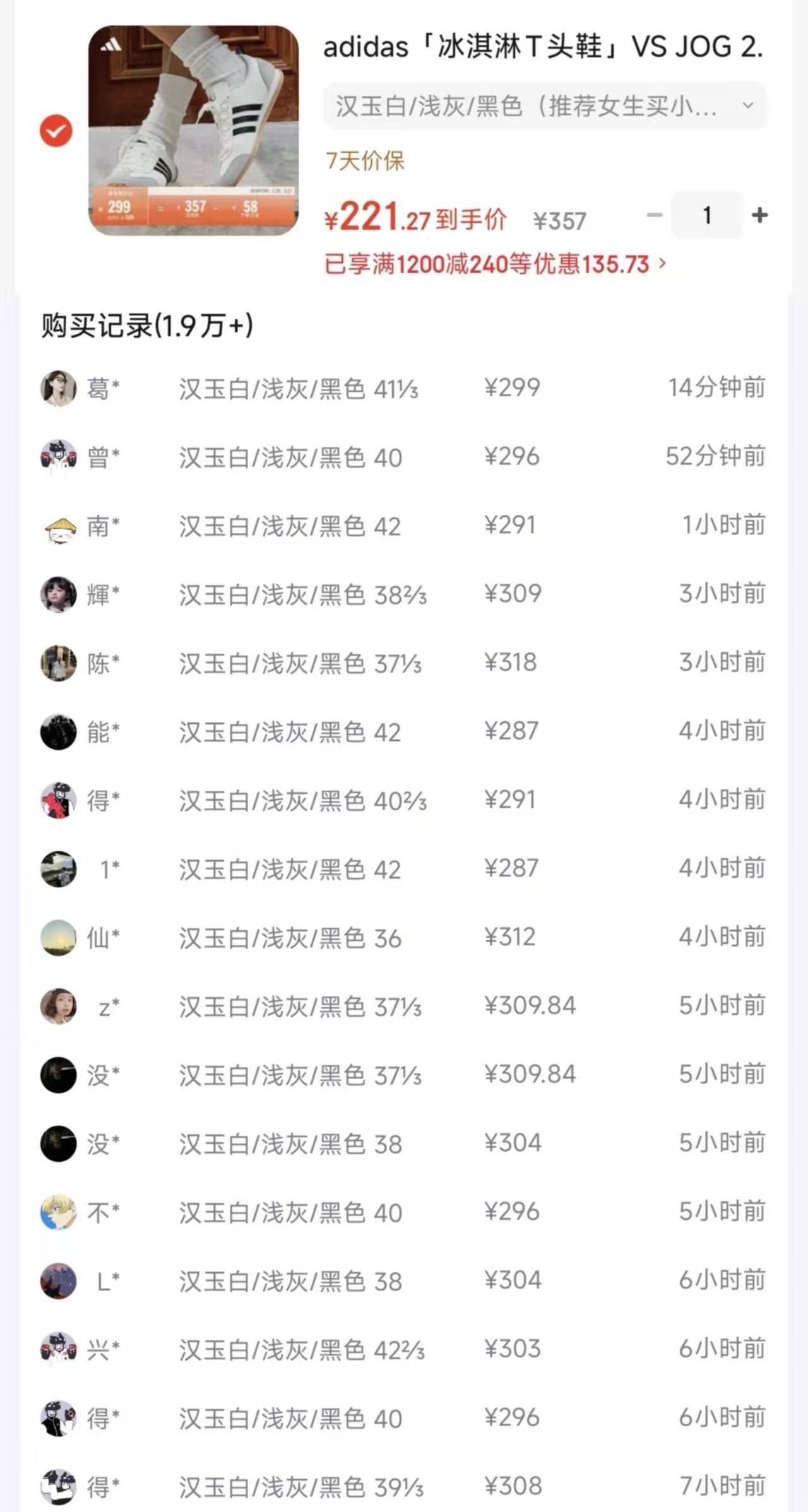阿迪冰淇淋T头到手价208元,比得物便宜101元