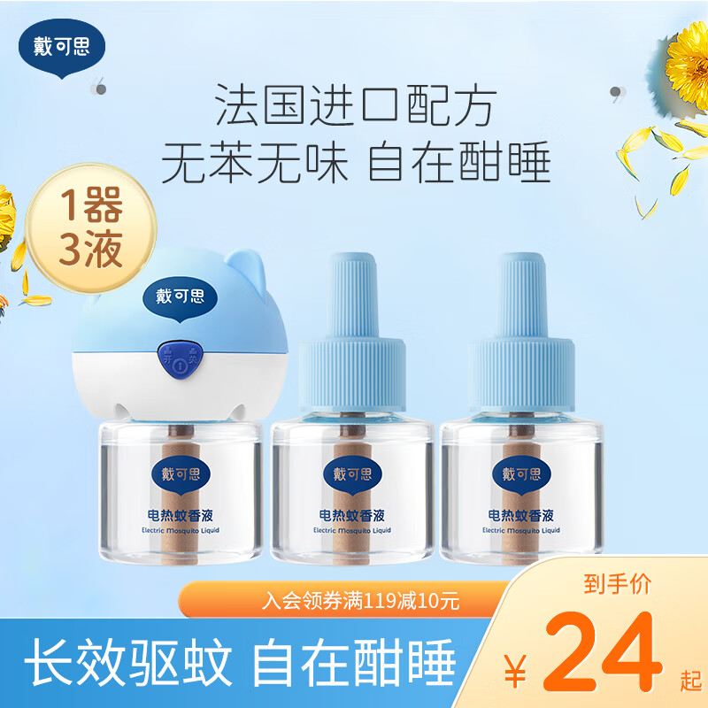 ¥18.9 戴·可·思(Dexter)无味电热蚊香液长效驱蚊防蚊虫叮咬 蚊香液1器3液 23.9