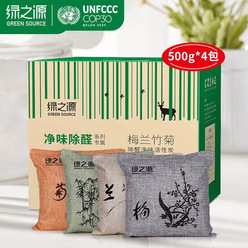 ¥28.4 绿之源 家居车用活性炭竹炭包除异味竹炭包除异味车除异味炭包 梅兰竹菊活性炭 500g 4袋 29.9