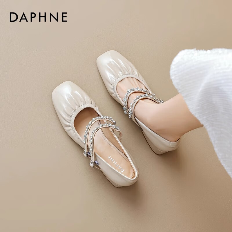 ¥99.9 DAPHNE达芙妮单鞋女2026春秋新款法式温柔晚晚鞋平底浅口一脚蹬豆豆鞋子女ZJ 米白色【珍珠丝带】 38 299.9