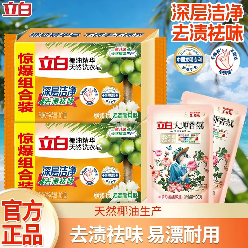 立白椰油皂2块+大师香氛洗衣液2袋,到手仅6.8元!