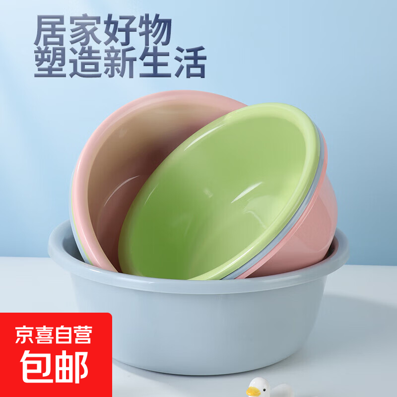 ins奶油风纯色脸盆中号仅需9.9元,学生宿舍必备加厚塑料洗脸盆