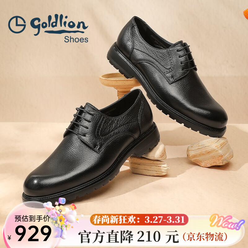 ¥929 金利来(Goldlion)男鞋春季正装鞋男士商务皮鞋男西装鞋婚鞋厚底德比鞋真皮鞋 黑色四季款(偏大一码) 40 959