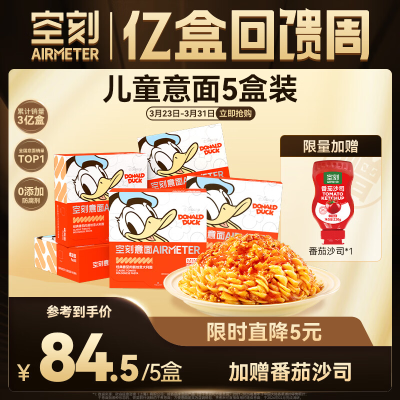 空刻番茄肉酱意面5盒装到手71.7元,折合14.3/盒还送番茄酱