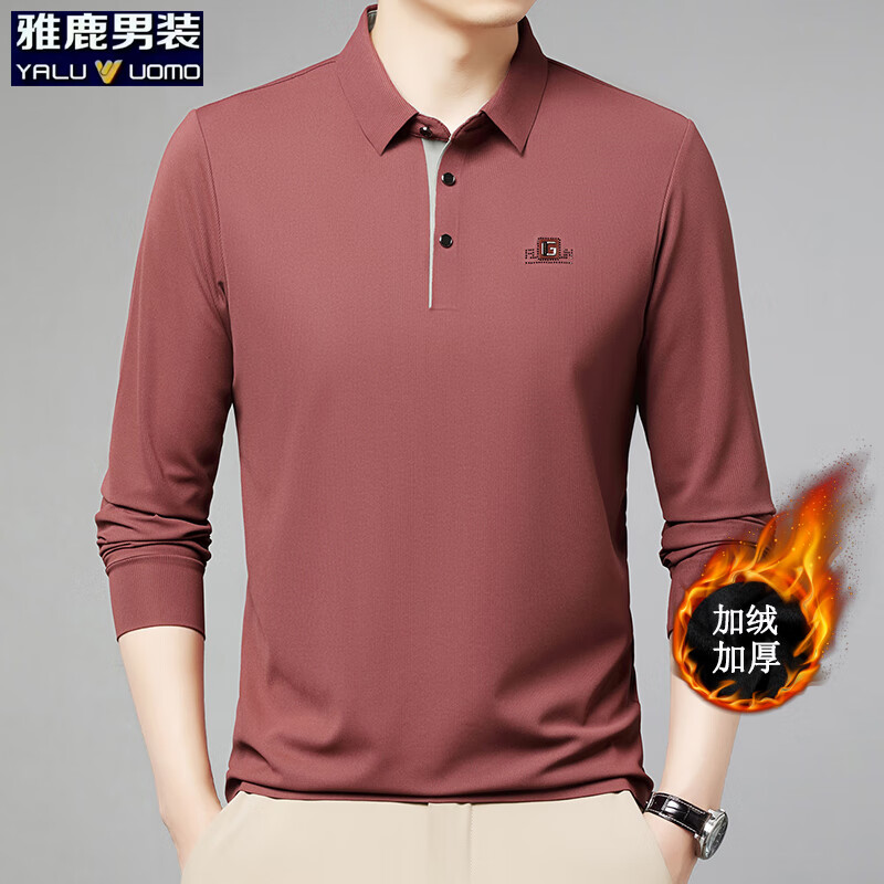¥54.9 雅鹿男装长袖t恤男春季新款翻领印花宽松男士polo中老年爸爸装上衣 酒红加绒 3XL (185)(建议165-180斤) 109.9