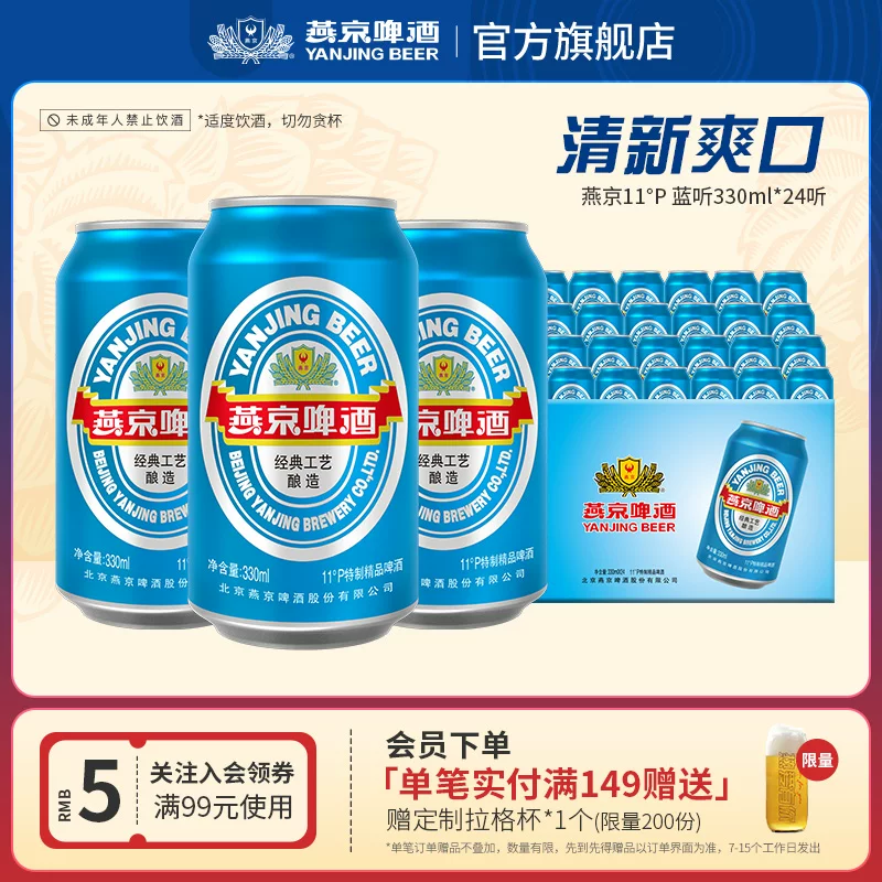 ¥36.05 燕京啤酒11度蓝听清爽黄啤酒330ml*24听 39.05