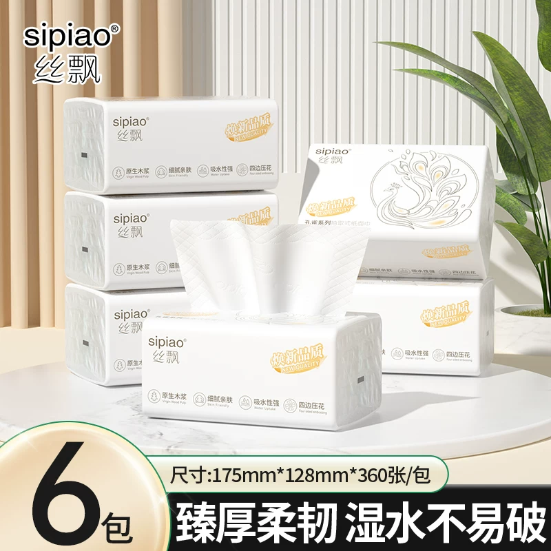 ¥6.99 丝飘抽纸6包360张(175mm*128mm) 9.99