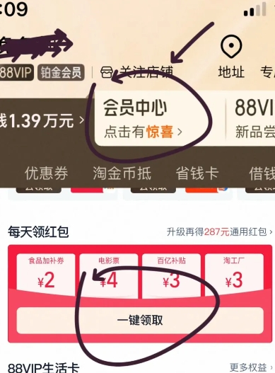 2、淘宝App-我的-会员中心-领15-3元券
