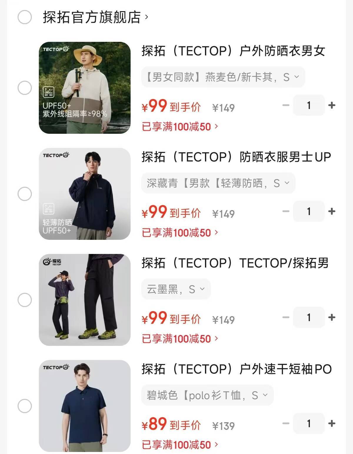 探拓防晒衣/裤/polo衫合集:冰感防晒衣99元起,速干Polo衫89元
