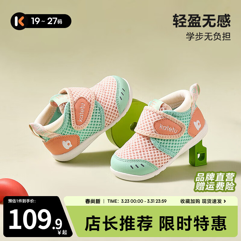 ¥139.9 卡特兔学步鞋婴儿1-3岁透气网面童鞋春季机能鞋幼儿园宝宝室内鞋X2AE003 粉绿 22 内长13.5cm 脚长12.5-13.0 169.9