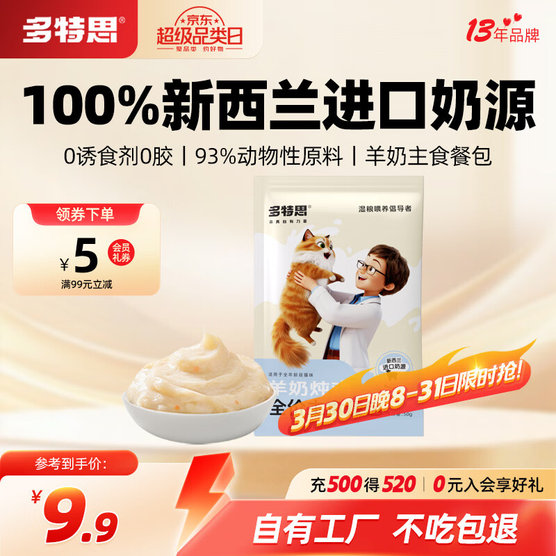 喵铮铮鲜乳鸽猫条5支装,9.9包邮叠加券后低至0.99元