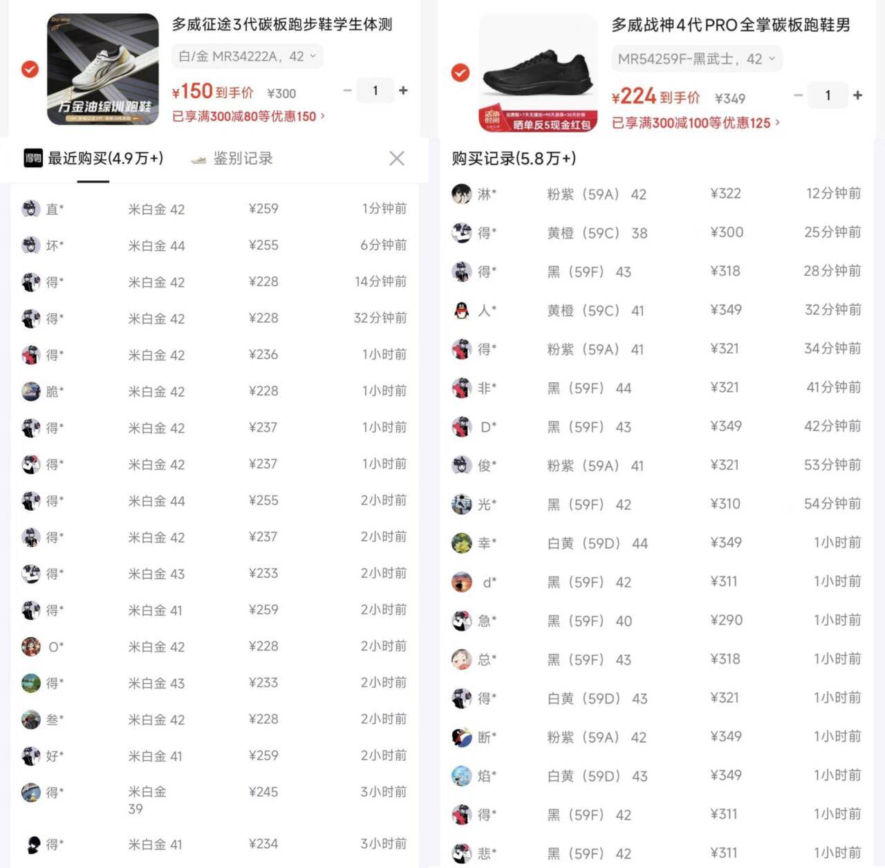 多威跑鞋特惠:征途3到手150元、战神4Pro到手219元,得物同款价更低