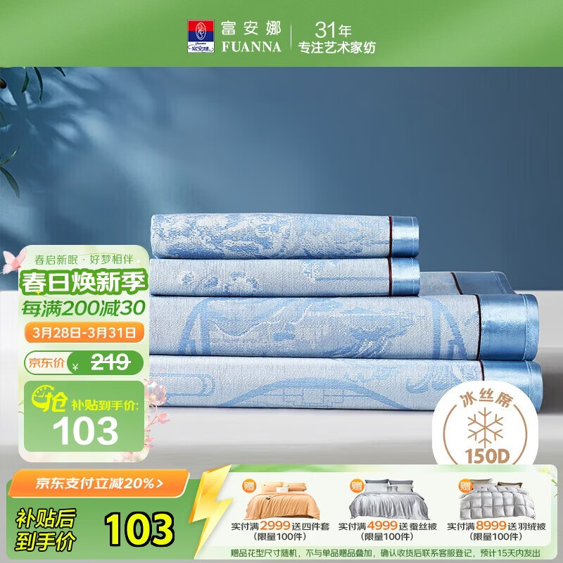 富安娜冰丝席三件套 低至67.04元