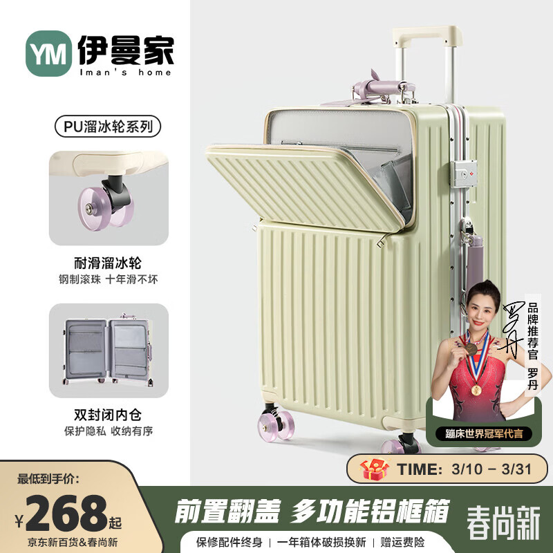 ¥346 伊曼家行李箱拉杆箱可上飞机铝框登机箱女款高颜值旅行箱前开盖大容量箱 香草奶昔(溜冰轮+多功能) 24英寸 (80%选择,5-7天旅行) 379