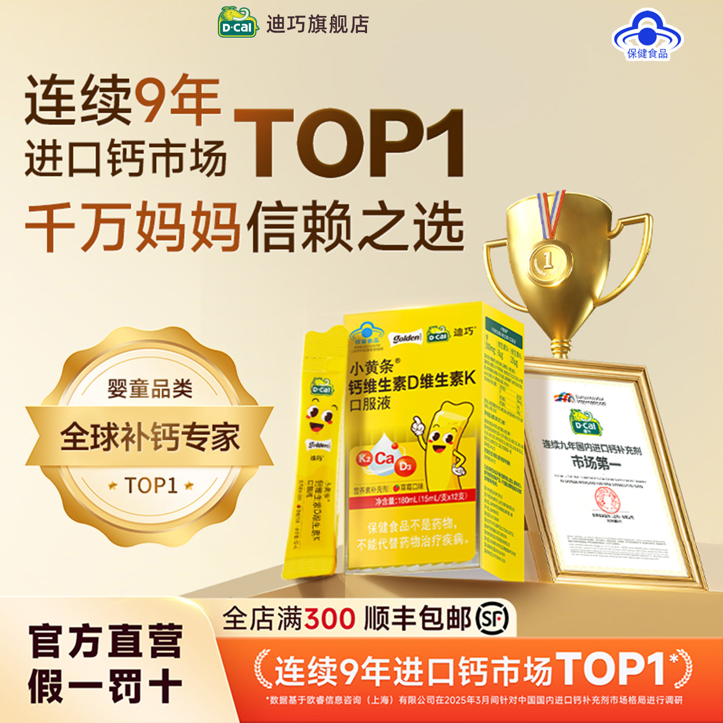 迪巧小黄条液体钙儿童 2盒装到手62.5元/盒