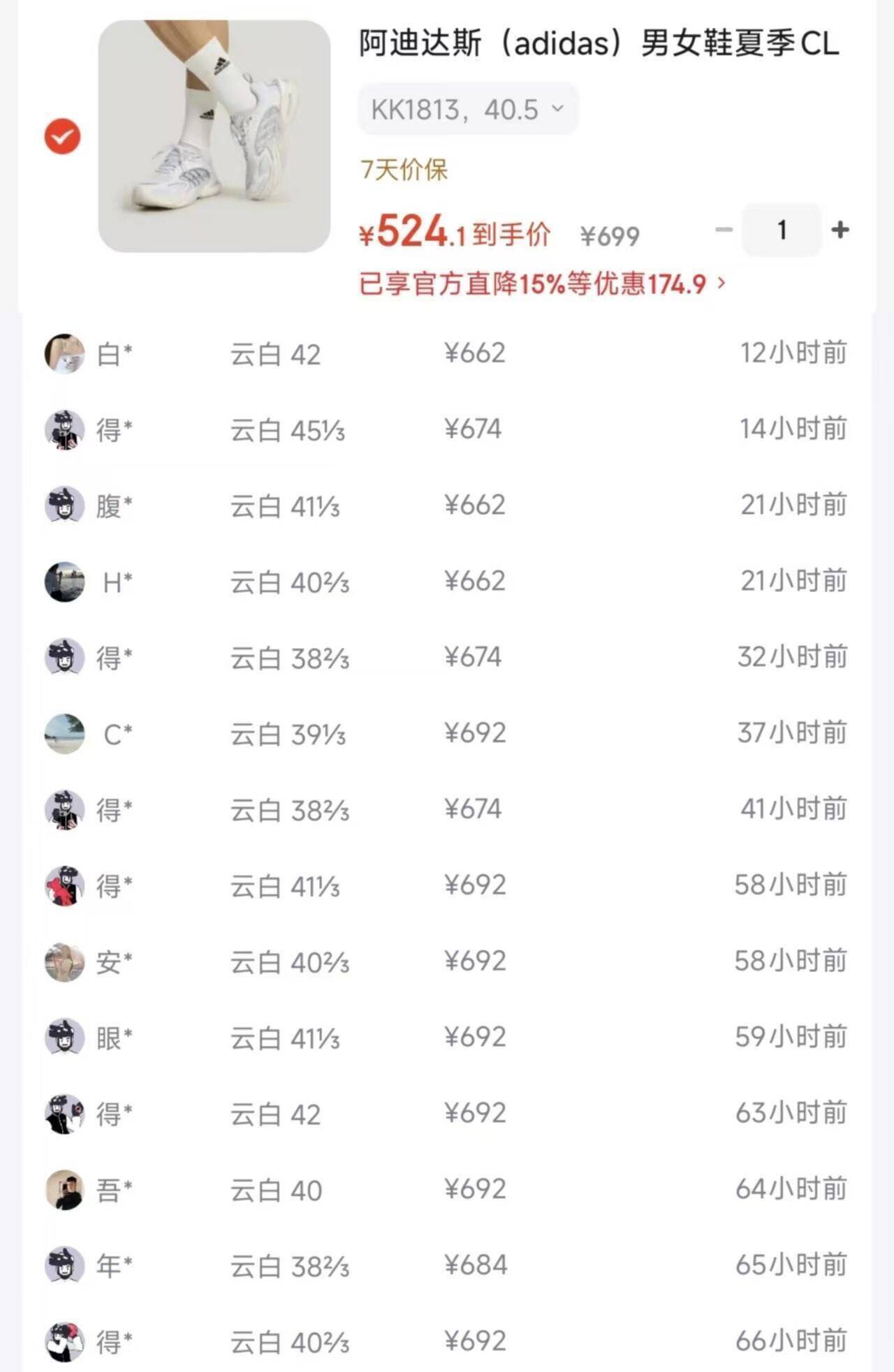 阿迪达斯清风 4.0云白到手524元