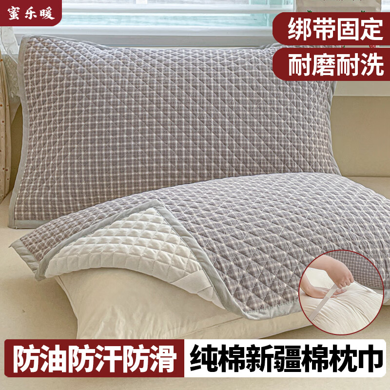 ¥18.7 蜜乐暖100%纯棉枕巾男士防油防汗全棉枕头巾夏季吸汗大枕巾纱布枕头枕套 布莱格灰 【100%正宗新疆棉】 【双绑带固定 防脱落】50x80cm【单只装】 23.5