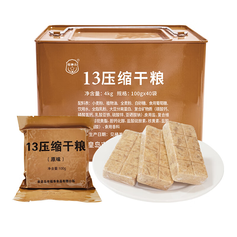¥109 特种兵13型铁桶压缩干粮 方便应急食品 多维生素 压即食管饱充饥抗饿 13型100g*40包铁桶4kg 149