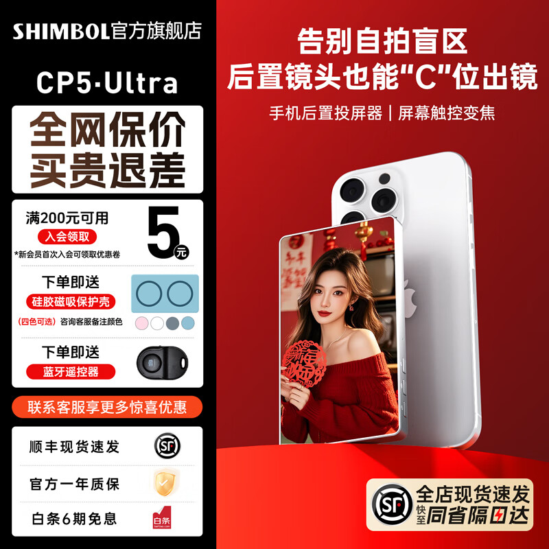 ¥394 SHIMBOL视澎CP5Ultra【可触控】拍拍宝手机后置摄像头自拍拍照神器手机自拍显示屏投屏器高清安卓苹果通用 【标配】CP5 Ultra 安卓苹果通用 399