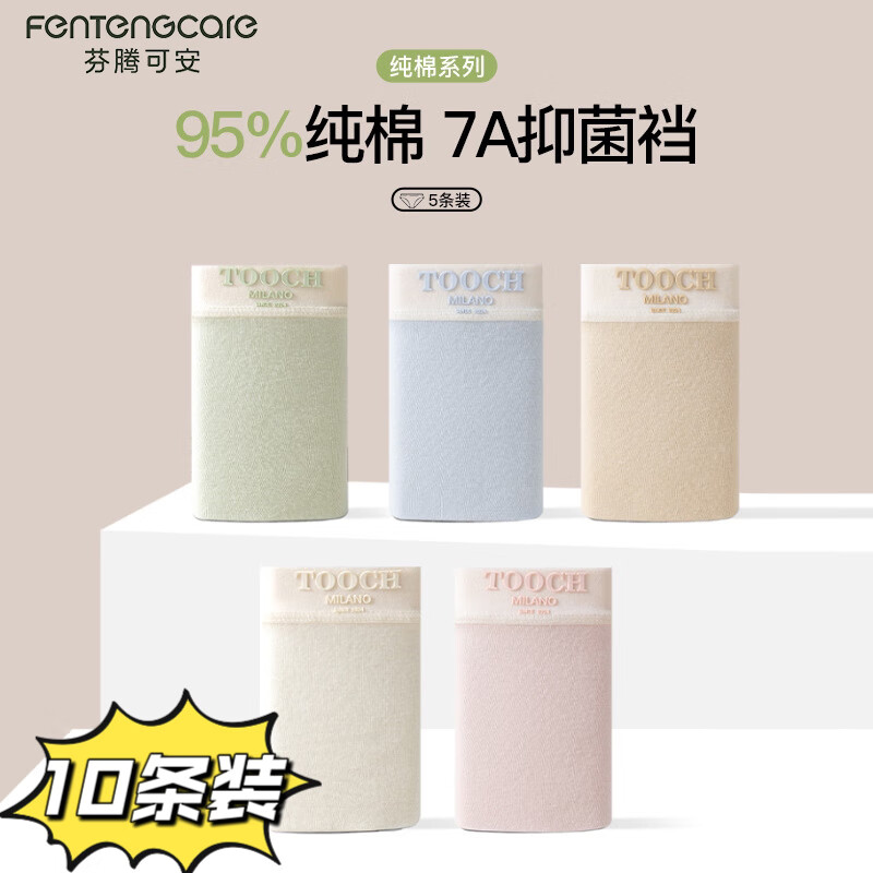 ¥54.9 芬腾可安【10条装】女士纯棉内裤女夏季透气抗菌无痕女士纯色短裤头健康 组合1(10条装随机颜色) M 160/85 69.9