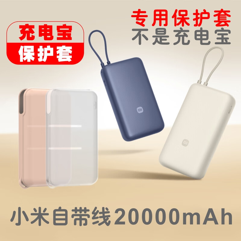 ¥19.04 MPPMCK充电宝保护套适用小米20000Ah自带线2万毫安33W移动电源22.5W软硅胶壳卡通印花套大容量快充宝透明 20000AH自带线充电宝-粉色保护套 23.04