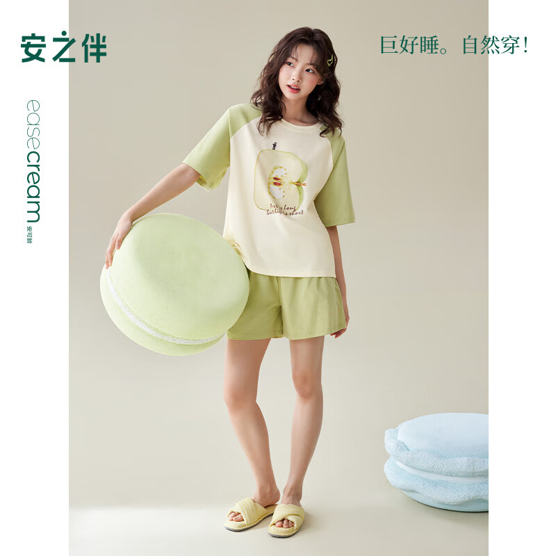 ¥69.8 安之伴【巨凉感】睡衣女夏季2026新款纯棉甜美可爱卡通宽松可外穿家居服 苹果绿【柔软有弹性-超入眠】 M 99.8