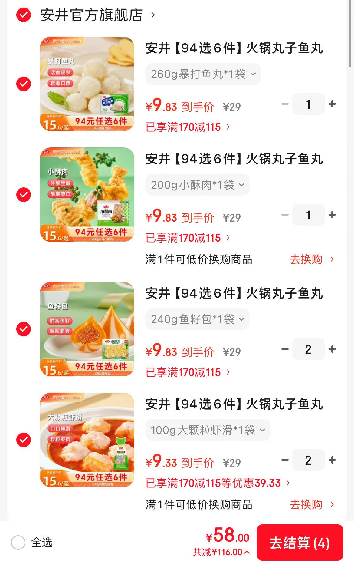 安井火锅丸子任选6件58元