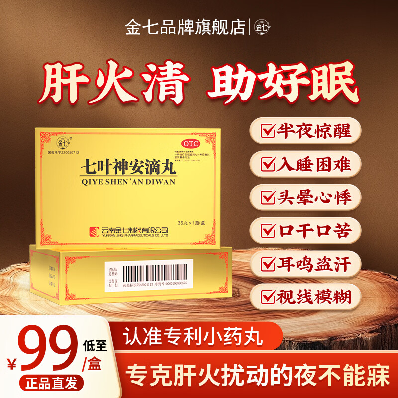 ¥99 [金七]七叶神安滴丸 50mg*36丸 1盒装 大药房 清肝降火养心安神乏力用于肝火旺导致的失眠多梦易醒正品云南治疗失眠 清火初体验/约3天量 149