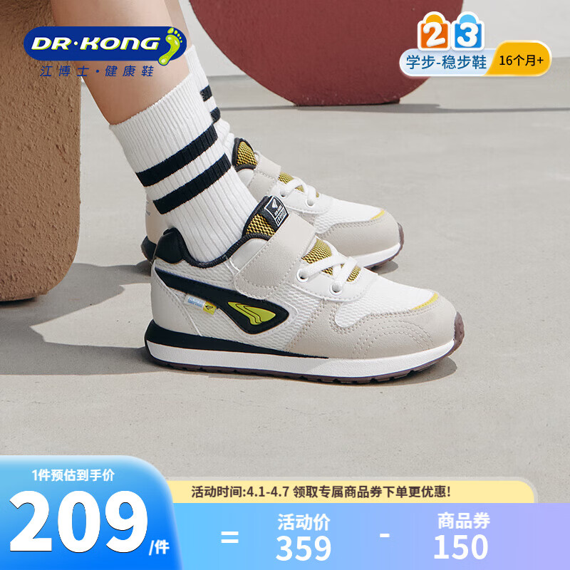 ¥209 江博士春秋男儿童舒适学步鞋 简约轻便儿童运动鞋 潮流百搭健康童鞋 米/卡其/黑 27 脚长约16.2-16.8 359