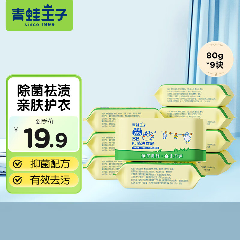 青蛙王子儿童抑菌洗衣皂9块装 到手19.9元