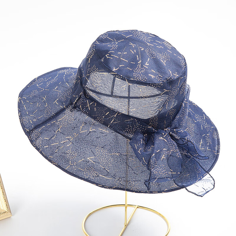 ¥29 达芬奇密码 时尚欧根纱太阳帽女夏季遮脸防晒帽子适合圆脸薄遮阳帽 藏蓝 蝴蝶结 均码57cm 59