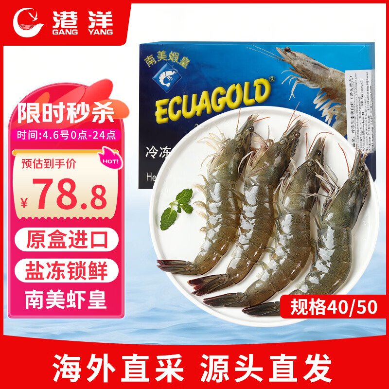 自营港洋厄瓜多尔白虾3斤装,拍2件仅需147.6元