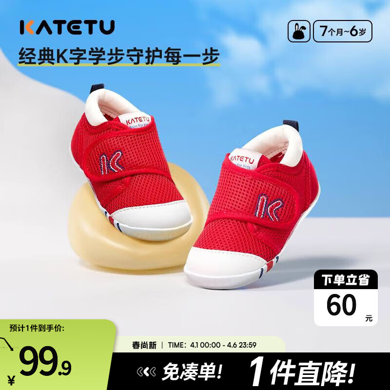 ¥129.9 卡特兔宝宝学步鞋春季童鞋儿童鞋软底婴儿鞋男童女童室内机能鞋 红色-春秋网眼 21 内长13.0cm 脚长12.0-12.5 159.9