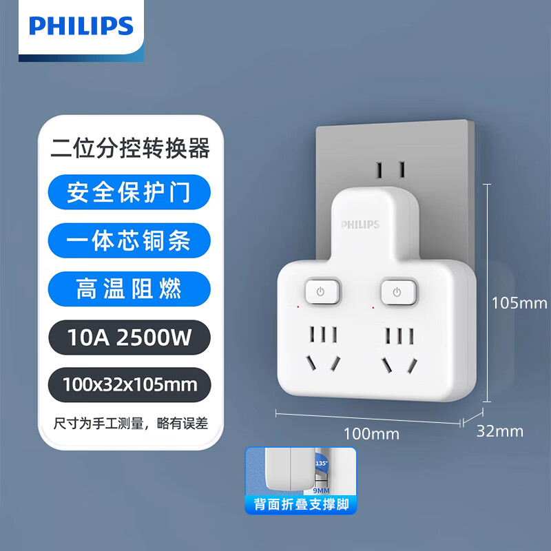 ¥16 飞利浦飞利浦插座转换器一转多扩展插头分控多功能家用电源转换头一转二插座一转三排插插线板多用一拖二 分控一转2插位 17.8
