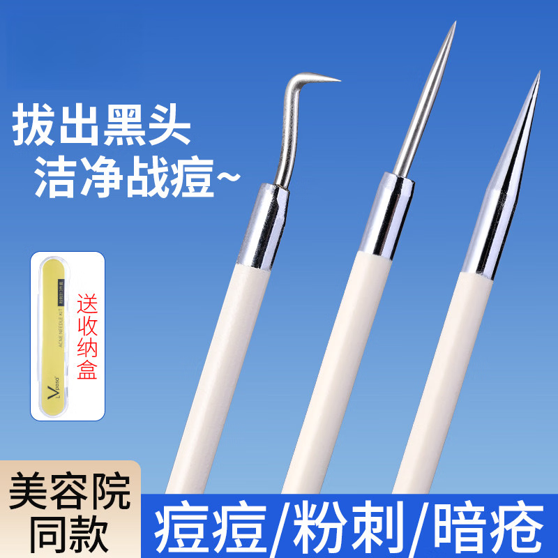 ¥13.9 兮儿超细细胞夹去黑头铲美容院专用粉刺针套装挤痘痘工具暗疮镊子 【祛痘3件套】送收纳盒 21.9