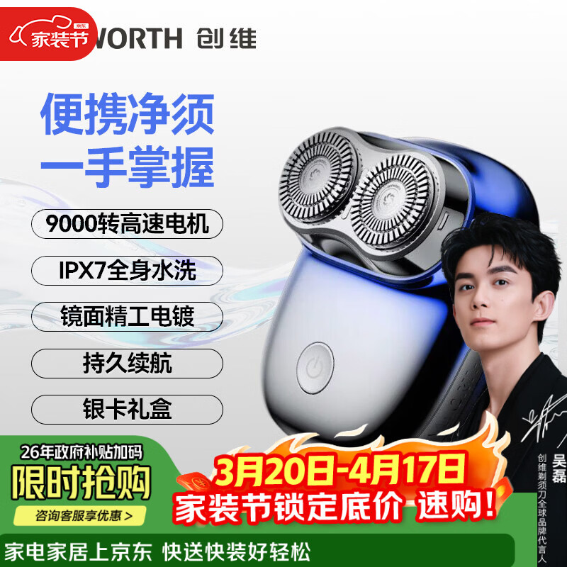 ¥66 创维元石mini剃须刀男士电动剃须刀旋转式刮胡刀便携剃胡须刀全身水洗新年生日情人节礼物送男友送父亲 镜湖蓝【爆款便携】元石nimi 79