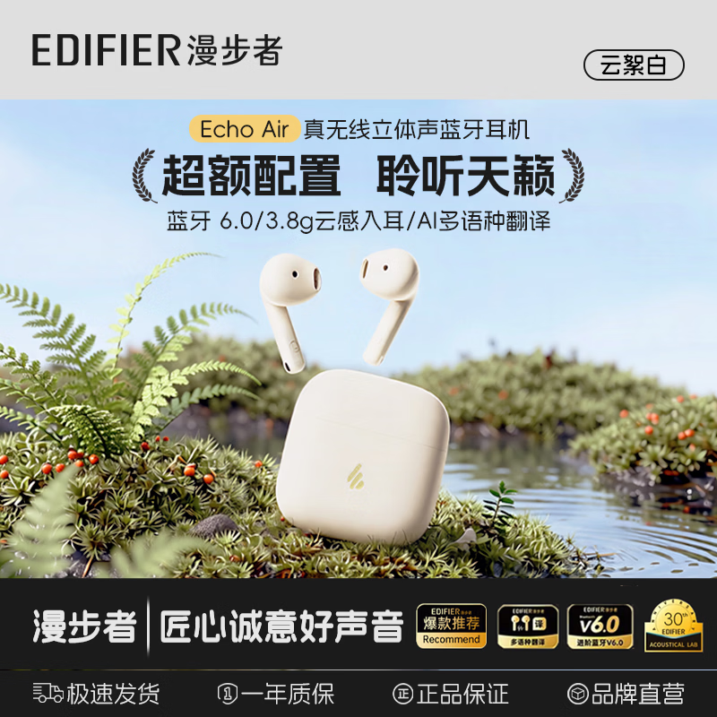 ¥109 漫步者Echo Air【定位防丢】真无线蓝牙6.0耳机半入耳式降噪超长久续航同声传译适用全部手机耳塞耳机 【定位防丢失+同声传译】Echo Air云絮白 159