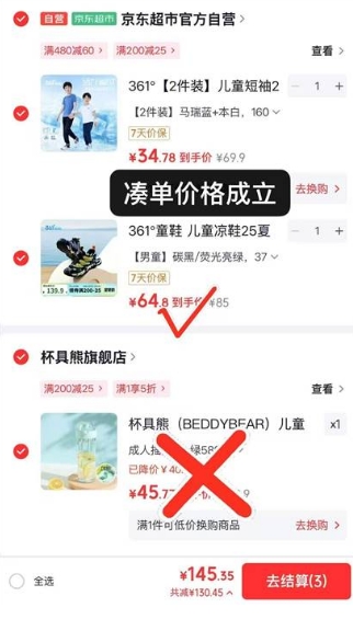 3、凑单1件(付款后退掉):