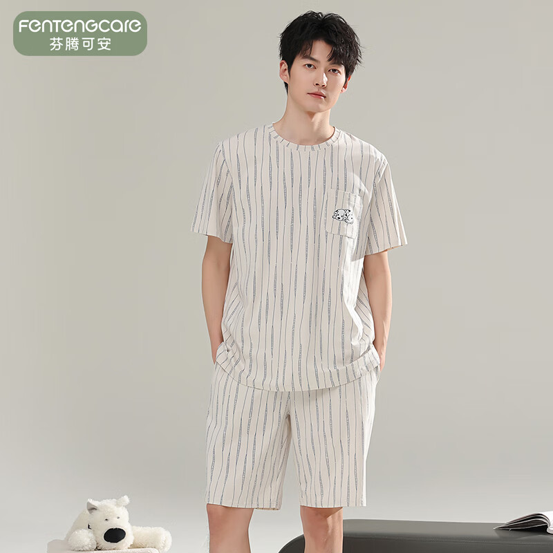 ¥49 芬腾可安(FENTENGCARE)【L】2026新款夏季莫代尔男士睡衣薄款套头短袖短裤宽松家居服 57122 L 89