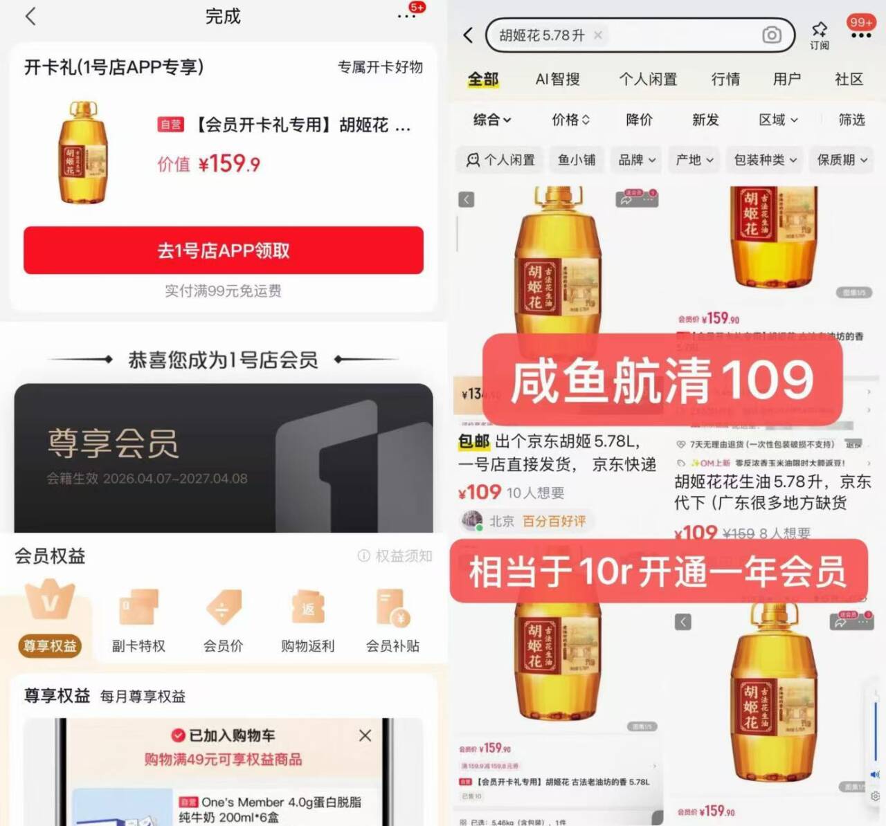 胡姬花花生油109元白嫖攻略,京东号月省116元