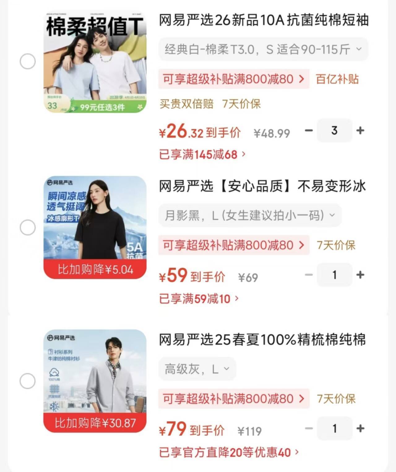 网易严选T恤/衬衫合集:超值T恤22元/件起,精梳棉衬衫79元