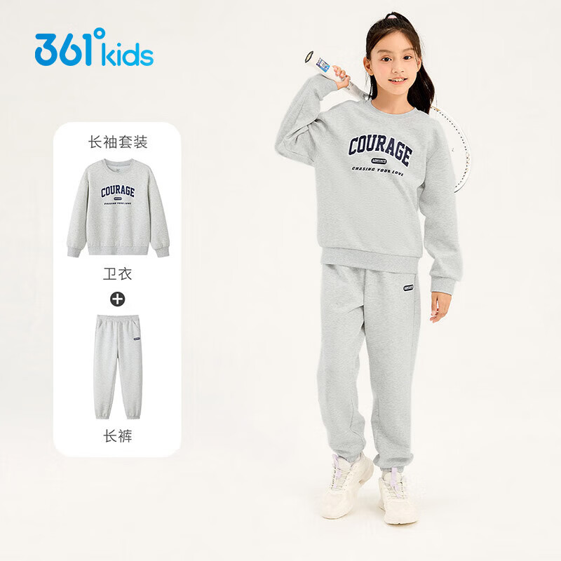 ¥89 361°童装男童长袖针织套装儿童百搭年春秋新款女童圆领运动套装 杏花粉/原色花灰 170 cm 169