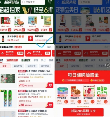 可叠猫超卡:天猫超市 搜【桃花运】【大宝藏】二选一,抽海量0.1/0.68/1.68/3.68