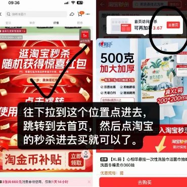 看下图步驟去拍非常简单!!!往下拉跳转首页秒殺即可