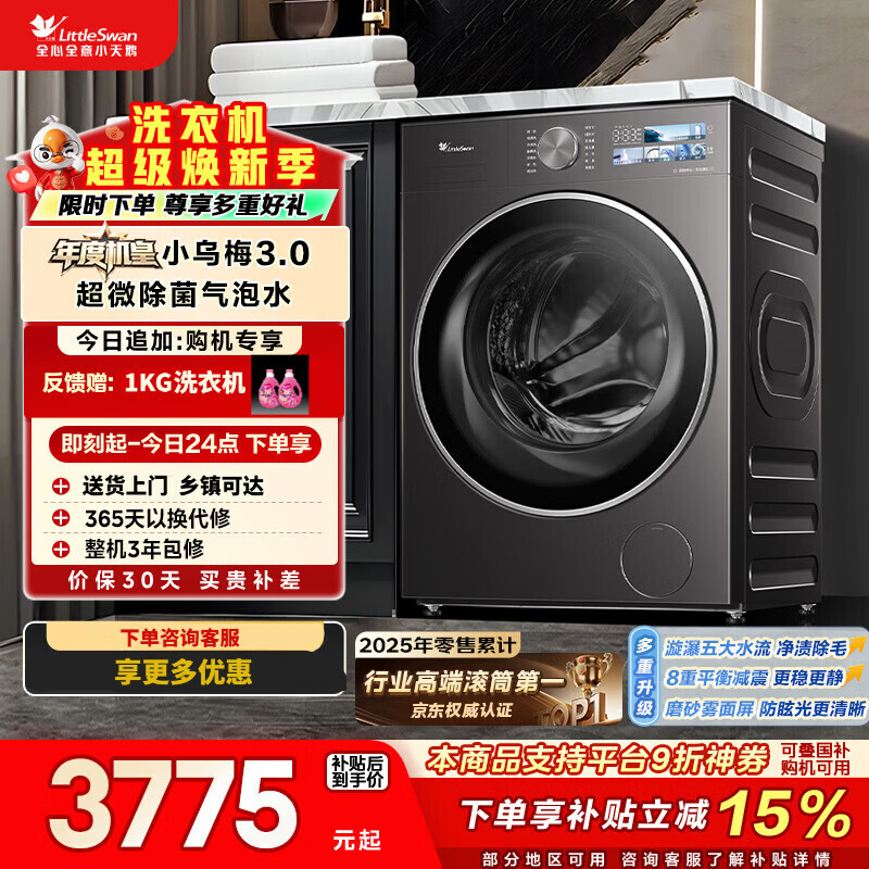 小天鹅小乌梅3.0洗衣机10kg纯平全嵌,限时特惠价2991元
