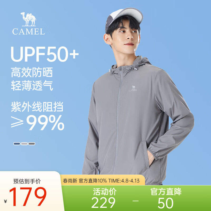 骆驼男款冰丝防晒衣UPF50+ 到手118.99元