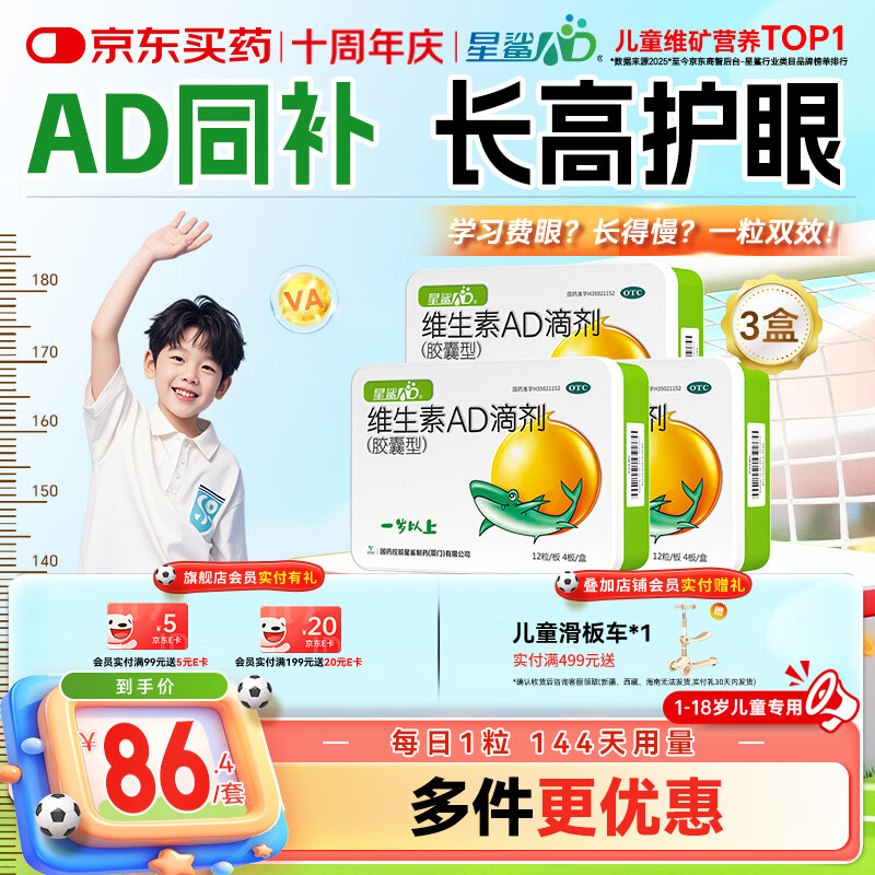 自营星鲨维生素AD滴剂3盒装,PLUS会员到手82元