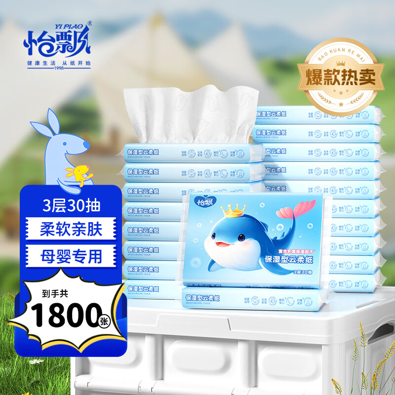 ¥11.97 怡飘云柔巾乳霜抽纸巾母婴可用 3层 30抽*20包 14.97