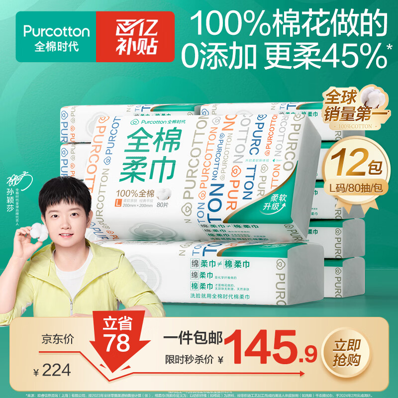 全棉时代孙颖莎同款洗脸巾,Plus到手118.6元仅9.8/包
