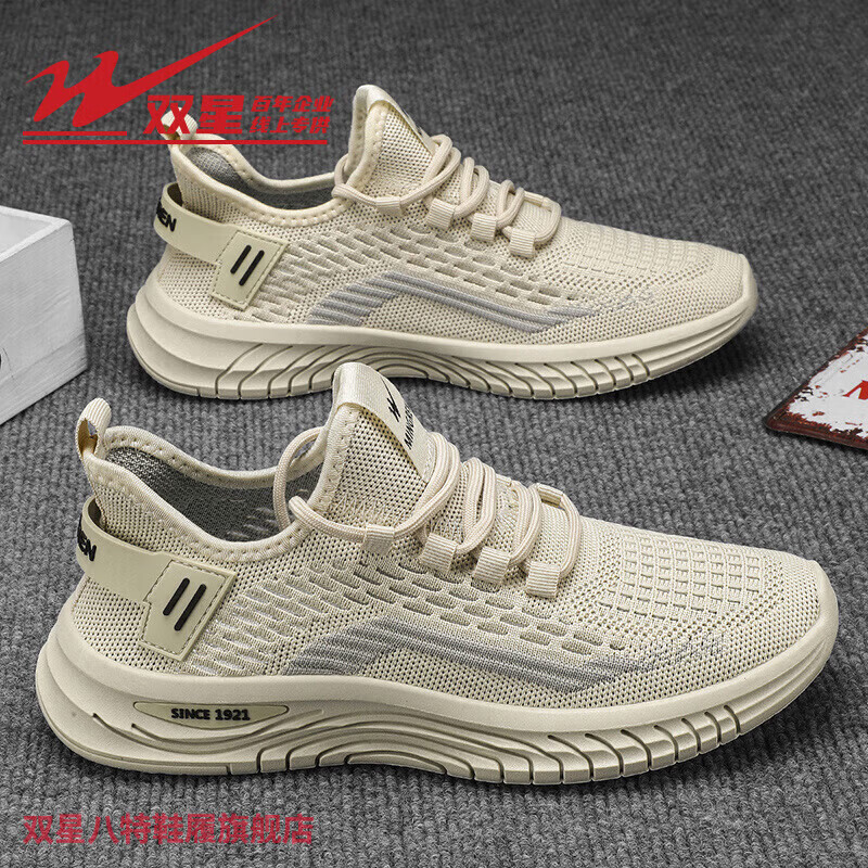 ¥69 双星(shuangxing)男鞋2026年夏季新款时尚潮流百搭低帮男士休闲鞋运动鞋 米色WDSM-71492 41 168
